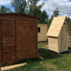 При этом точность расчета проверяется с помощью рулетки. Затем прибивают вертикальные бруски. Следует отметить тот факт, что если Вы за выходные не успели доделать до конца туалетную (или душевую кабину), то бруски следует промазать специальным составом или краской. Делается это для того, чтобы не появлялся на поверхности древесины грибок в виде плесени. После того как каркас готов, можно будет уже обивать его. Но перед этим следует убедиться еще раз, что он сделан не криво. Это можно проверить с помощью отвеса, а также чтоб за этим следил некто третий со стороны (этим третьим может быть и женщина). Для этого, чтоб он (она) отходили вбок по правую или левую сторону от будущего входа в туалет (или иное помещение) и смотрели вдоль воображаемой линии (плоскости), проходящей через три вертикальных бруска (как на фронтальной, так и на задней стороне). Если все три бруса лежат на одной плоскости (для обеих сторон), то дело идет хорошо и можно прибивать саму вагонку. Если же хотя бы на одной стороне бруски "не лежат на одной плоскости", то выясняйте причину этого и устраняйте. Для этого надо будет обрезать нужный брусок.